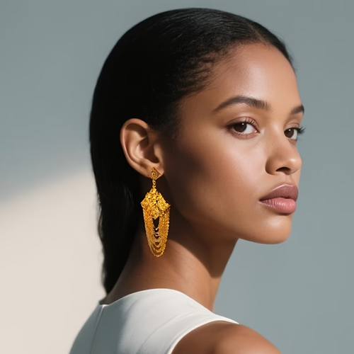 24k gold long tassel earrings, fashionable drop earrings, Middle Eastern Dubai Bohemian gold-plated earrings